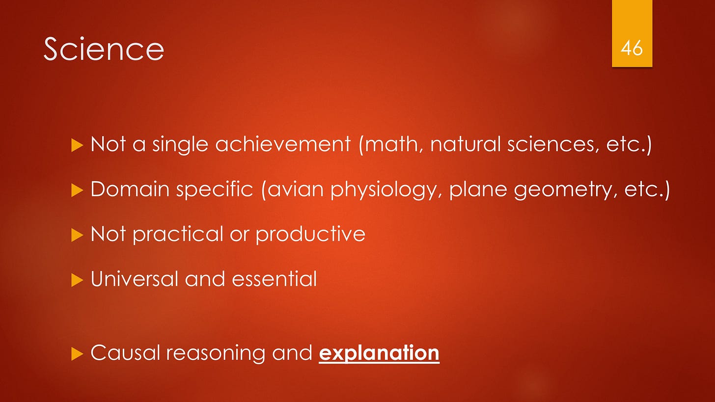 This paragraph originally contained a typographical error. It stated that “The virtue of science ... is the habit of reasoning from principles to causes.” “Causes” was wrong. That has been corrected, effective February 4, 2026, and some additional elaboration added.