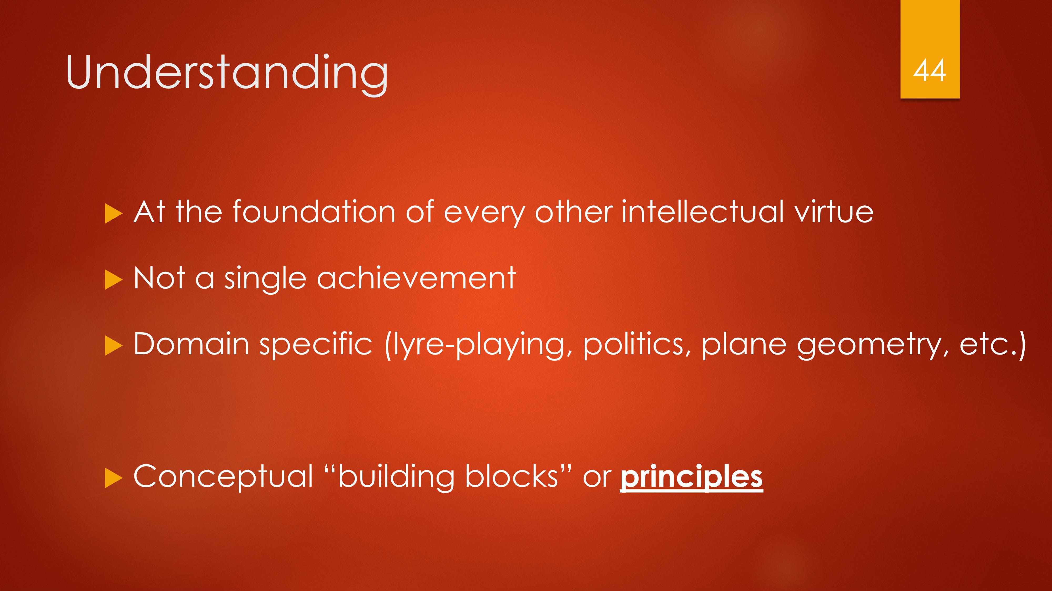 Understanding is the habit of knowing, grasping, the first principles of a particular discipline.